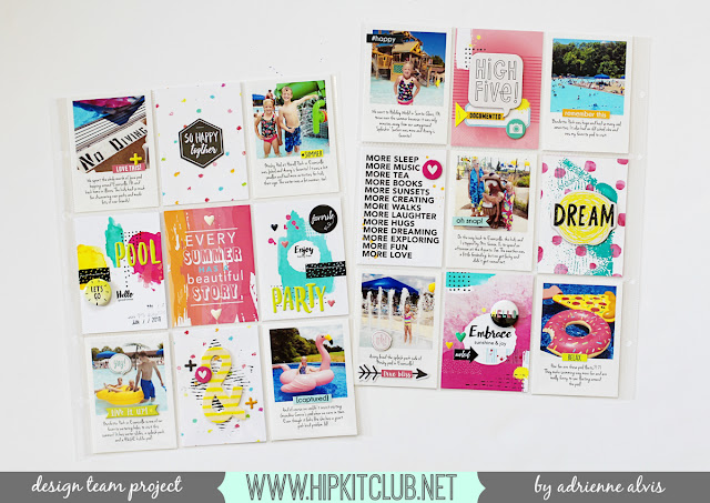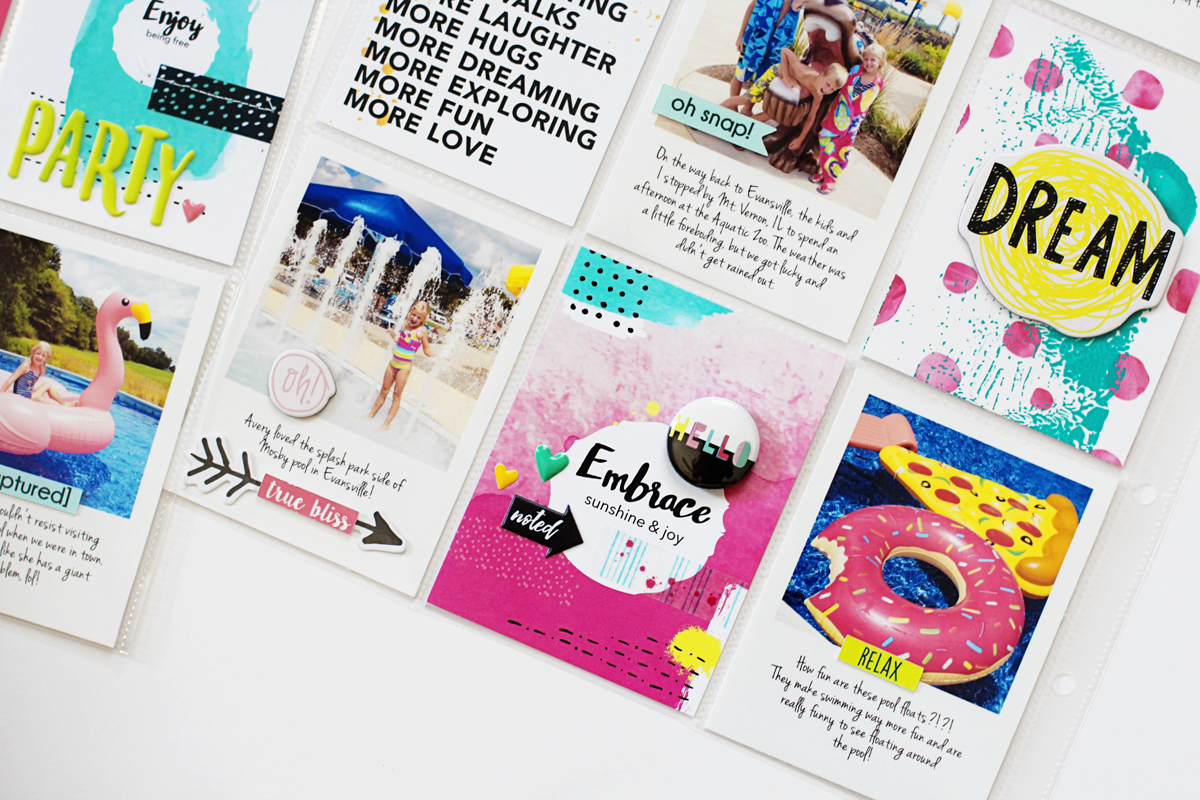 I have tons of pool photos from this summer and I wanted to corral them all into one pocket page spread so I used some of the journaling cards from the July 2016 Project Life Kit and made an insert for my PL album.