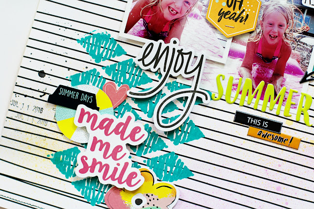 I love how bright and colorful this page turned out and the Color Me Happy collection is perfect for all of your summertime scrapping needs!