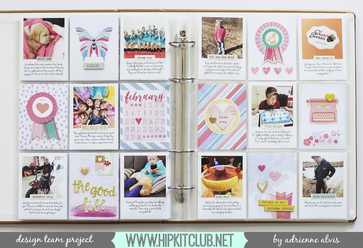 I used the February 2017 Project Life Kit and embellished the exclusive journaling cards using items from Pink Paislee and Crate Paper.
