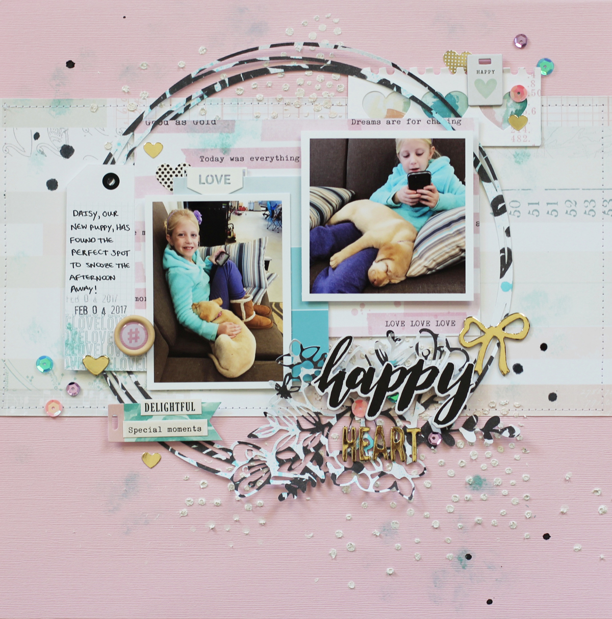 I used items from the Maggie Holmes Chasing Dreams collection to embellish my layout and layered a few sequins around for even more shimmer and shine!
