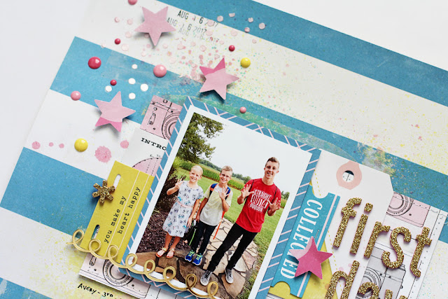 Hello, crafty peeps! I have this layout that I created using some of my favorite Shimmerz products documenting my kids' first day back to school up on the Shimmerz Paints blog today. I seriously can't believe how much they grew this summer and are starting another year so soon!