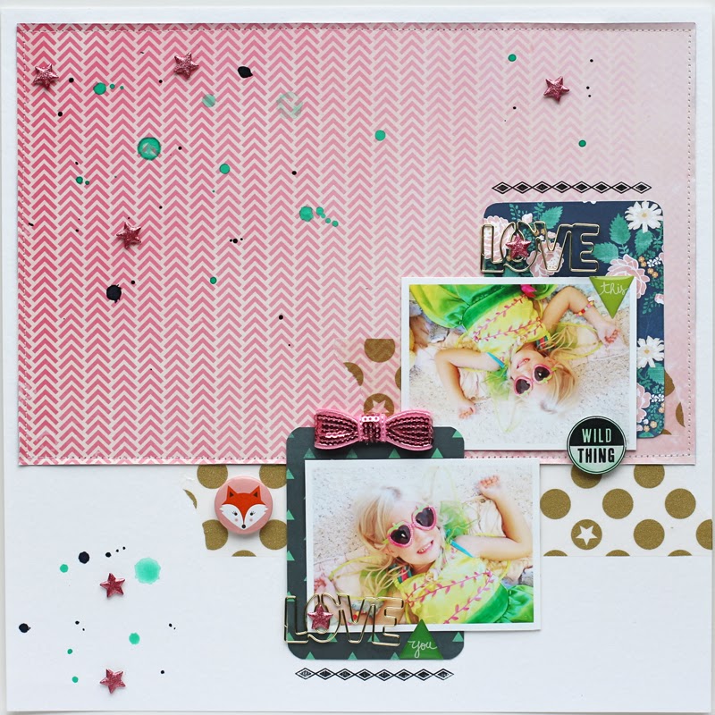 When I saw the sentiment stamp "Wild Thing", I just knew it would be perfect for this layout.  My daughter loves to dress up, dance around, and be wild! Ha ha, don't we all ;)