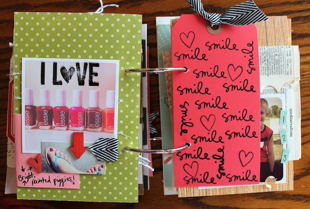 1. I painted the cute camera veneer from SC and wrapped it in some baker's twine and added the chipboard phrase to represent my new love for photography and to never give up on my dreams of having a bigger presence in the scrapbooking community (sounds cheesy, I know, but it's true :).