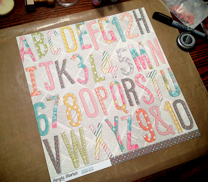 I have quite a few pieces of patterned paper in my stash that have an "alphabet" design printed on them and for some reason or another (maybe just fear, lol!) I have NEVER used any of them...until now...