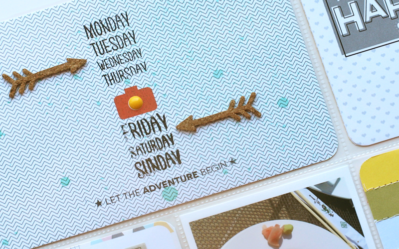 The paper and embellishments from the Destination Collection were perfect for this layout! They really helped me pull off the "travel-theme" and the colors are so bright and fun to work with.