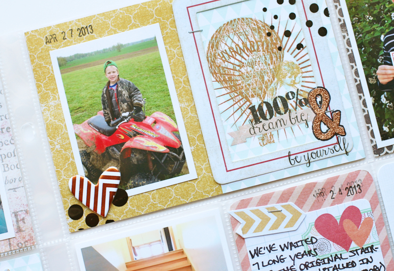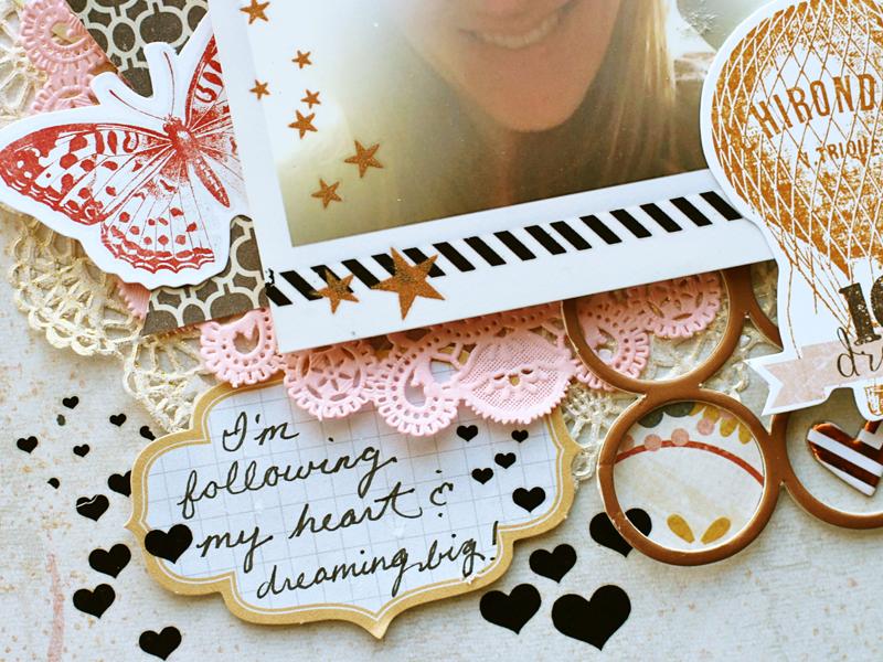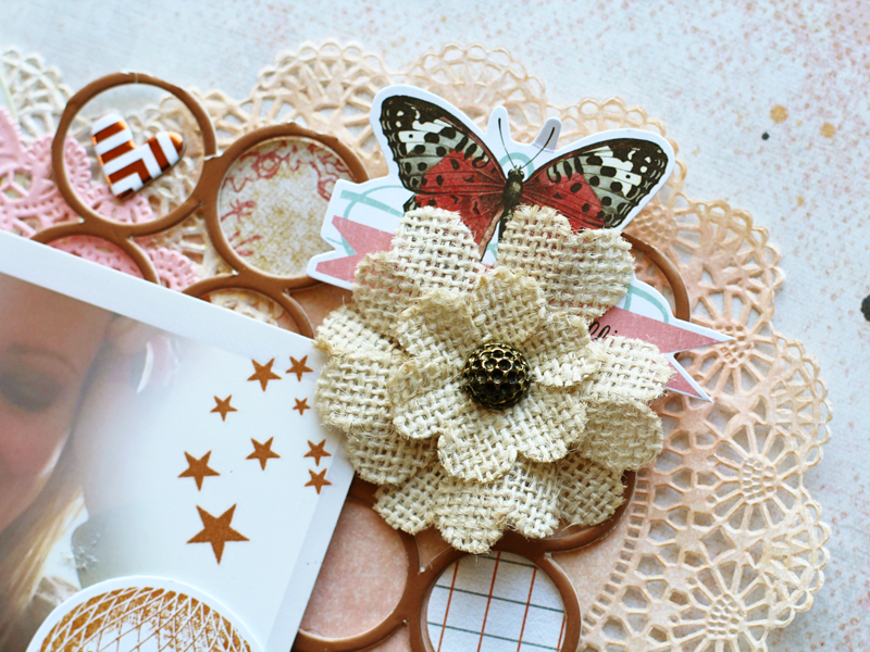 I misted the white doilies with some Heidi Swapp Color Shine in Gold Lame before I layered them underneath my photo.
