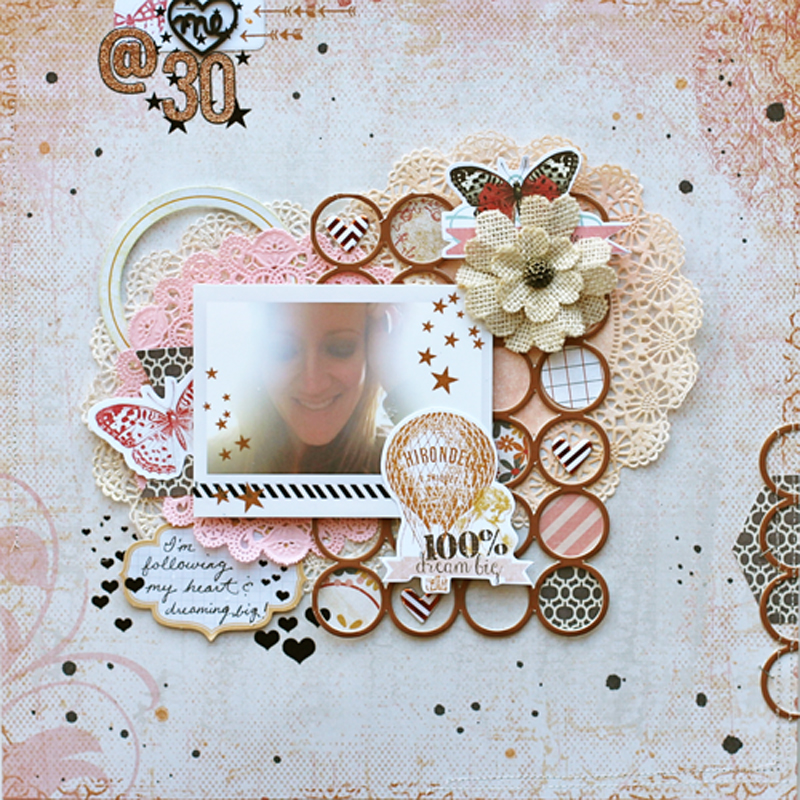 I went all out girly and glam for this layout :) I had yet to scrap a photo of myself since I turned 30 last August and I thought the Luxe and Cottage Farms Collections were perfect for this photo.