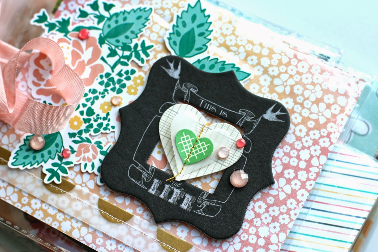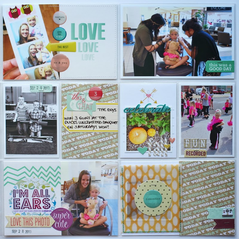 In my post, I show you 5 ways that product packaging can be used on layouts, cards, and even this mini album! Please head on over to shimelle.com to see my full post with lots of detailed images and more information.