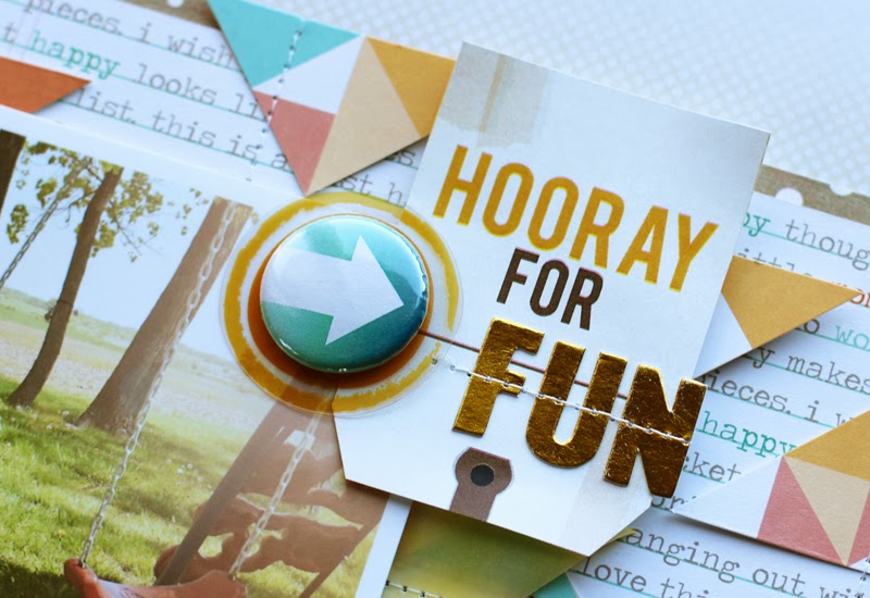 I cut out the "Hooray For _______" piece from the 4x6 card that can be found in the October Exclusive Kit and added the gold letters from the Good Tidings Collection on top. I love the font and size of those letters...perfect for any layout!
