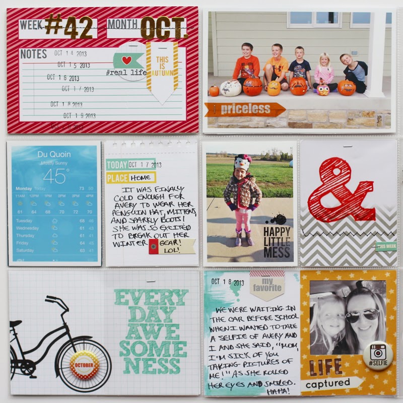 I love that the journaling cards from the kit and the Happy Place Collection coordinated so well, which made it really easy to pull my spread together.