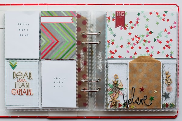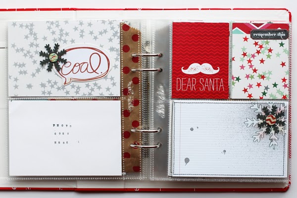 I added in several kraft baggies to hold ephemera and other holiday treasures I might collect throughout the month. I also plan on doing some extra embellishing after I place my photos in their sleeves each day.