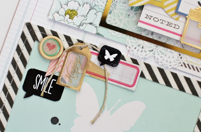 I used Gossamer Blue's December Memories kit and was a class contributor so I had to create my base pages ahead of time. I'm a "work around the photos" type of scrapper so that was something very new and different for me to do :) I created my base pages back in October and now that November is almost over I'm so thankful that much of it is already complete!