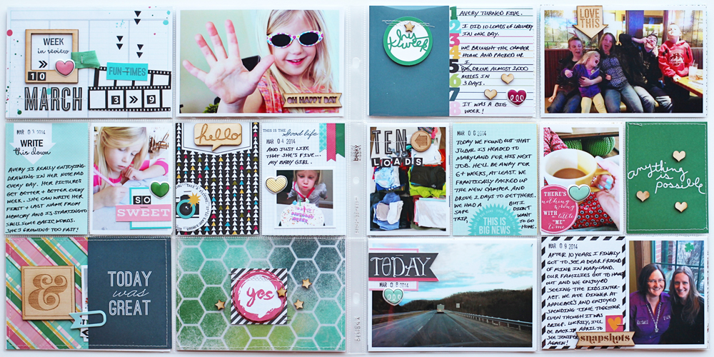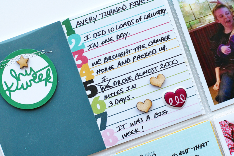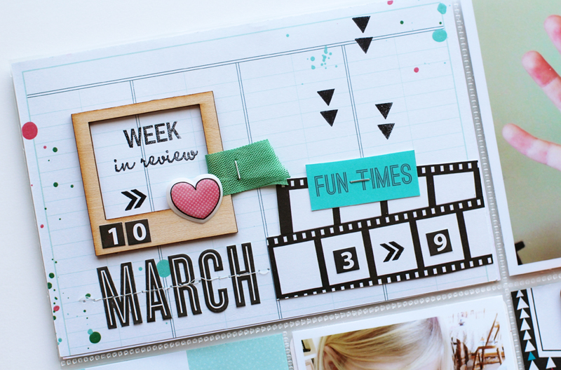 I was really inspired by the color scheme in the kit and used it throughout this week's spread.