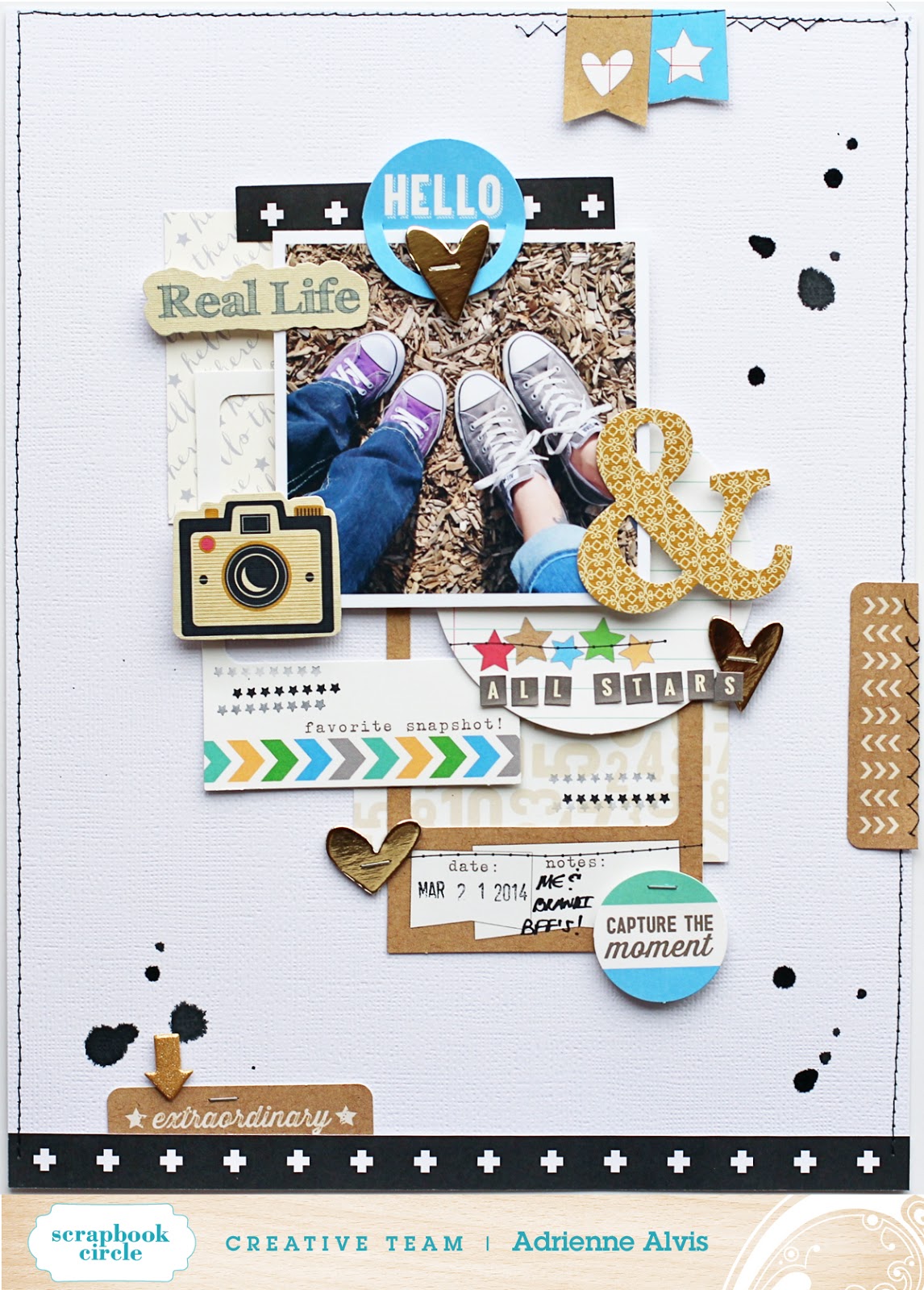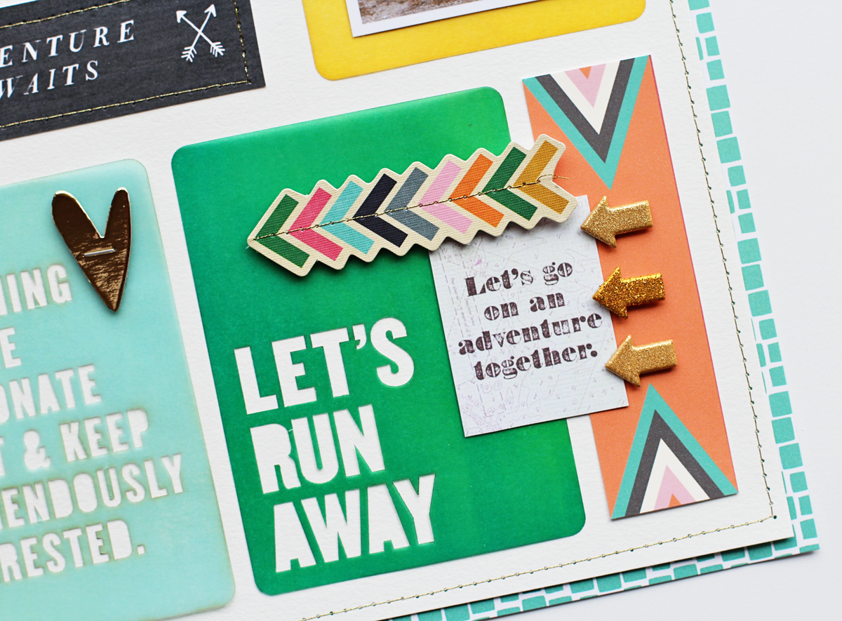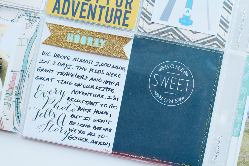 I love how the gold embossed stamping stands out on my page! And I love how easily the stamp set coordinates with the April OHDEERME kit :)