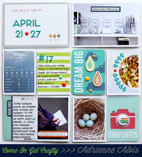 Here's a look at my spread for Week 17 using lots of great spring and summer-themed items from the Come On Get Crafty shop...